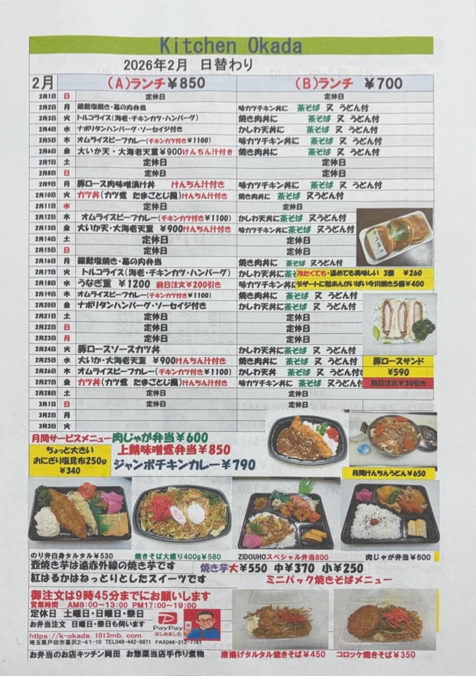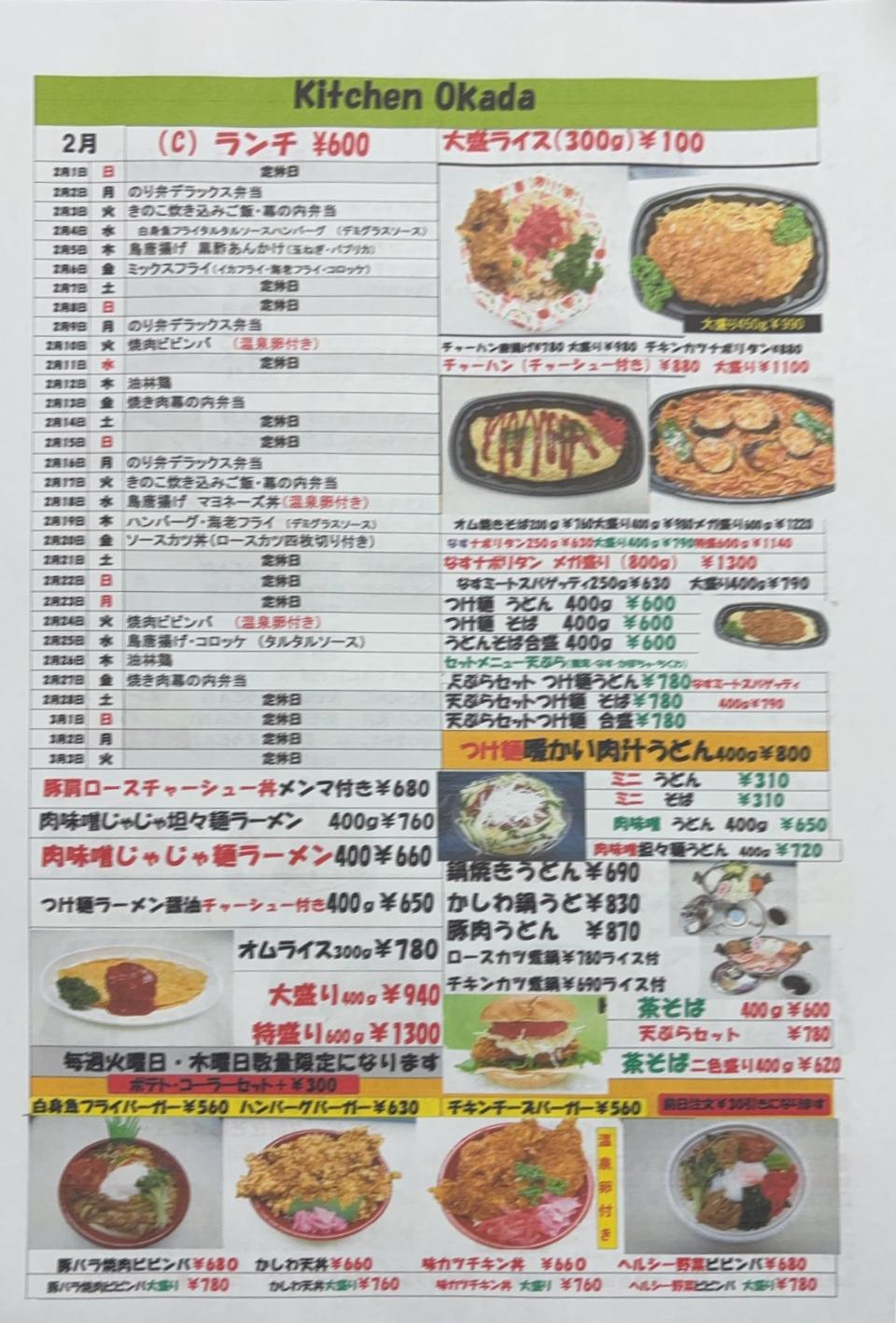 2月の日替わりランチメニュー